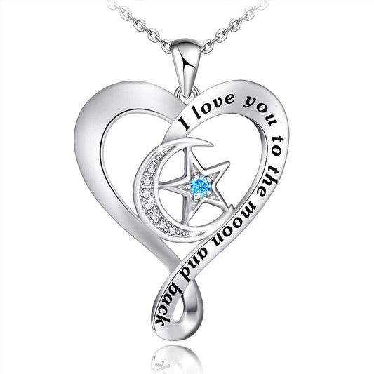 I Love You to The Moon and Back Necklace 925 Sterling Silver Heart Pendant Necklace Jewelry Gifts for Women Mom Wife Girls