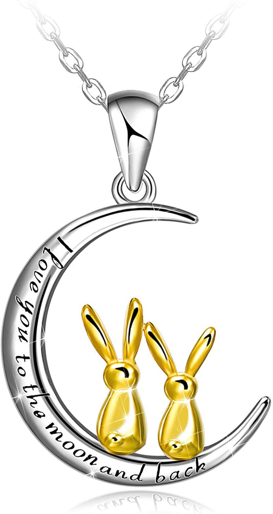 I Love You to The Moon and Back Necklace for Women,925 Sterling Silver Double Bunny Rabbit Panda Necklace Jewelry Gifts for Women Mom Daughter Wife Girls