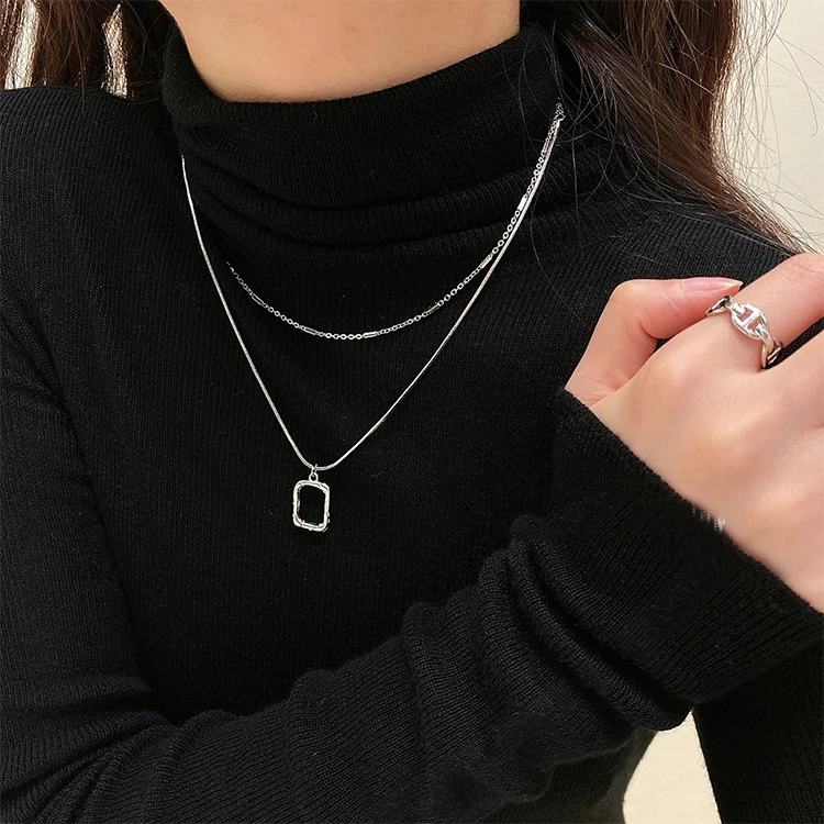 Square Hollow Double Necklace